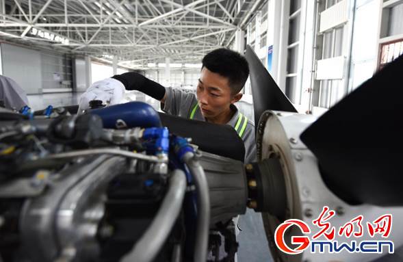 中國民航大學內蒙古飛行學院的學員正在進行通用飛行器維修訓練。光明網(wǎng)記者 潘迪攝