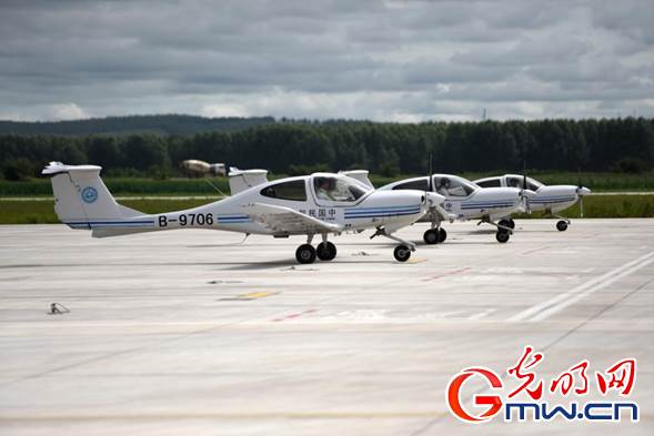 光明網(wǎng)訊(記者 趙艷艷 潘迪 李剛)“嘟嘟嘟……”在內蒙古自治區(qū)扎蘭屯成吉思汗機場的跑道上,一架架訓練機整齊劃一,蓄勢待發(fā)。沒幾分鐘,隨著飛行學員們熟練的操作,訓練機機群直上云霄,在成吉思汗機場上空畫出一道道美麗的弧線。這些年輕的飛行學員們,來自中國民航大學內蒙古飛行學院。