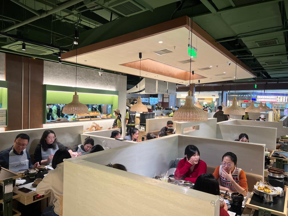 臨近跨年零點(diǎn),山緩緩餐廳山西首店還有一些顧客在排隊(duì)候餐,期待嘗鮮“山野風(fēng)”火鍋。山緩緩品牌北區(qū)運(yùn)營(yíng)總監(jiān)王志剛說:“跨年當(dāng)日我們店的營(yíng)收額突破8萬元?!辈惋嬙谛嘛L(fēng)格和新體驗(yàn)上迭代升級(jí),區(qū)域首店也更能激發(fā)消費(fèi)者熱情。