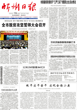 1月18日,全市脫貧攻堅誓師大會召開,標(biāo)志著我市的脫貧攻堅戰(zhàn)正式打響。一年來,全市上下深入貫徹落實中央扶貧開發(fā)工作會議特別是習(xí)近平總書記關(guān)于堅決打贏脫貧攻堅戰(zhàn)的重要講話精神,堅持以脫貧攻堅統(tǒng)攬經(jīng)濟社會發(fā)展全局,全面落實“3659”脫貧攻堅策略和“4433”實施辦法,全年完成貧困村出列589個,貧困人口脫貧8.73萬人,106個戶籍人口50人以下貧困行政村整村搬遷有序推進。(2016年1月19日《忻州日報》)