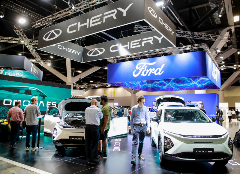 (資料圖)11月8日,在澳大利亞悉尼國(guó)際會(huì)議中心,觀眾在奇瑞汽車展臺(tái)參觀。新華社記者 馬平 攝
