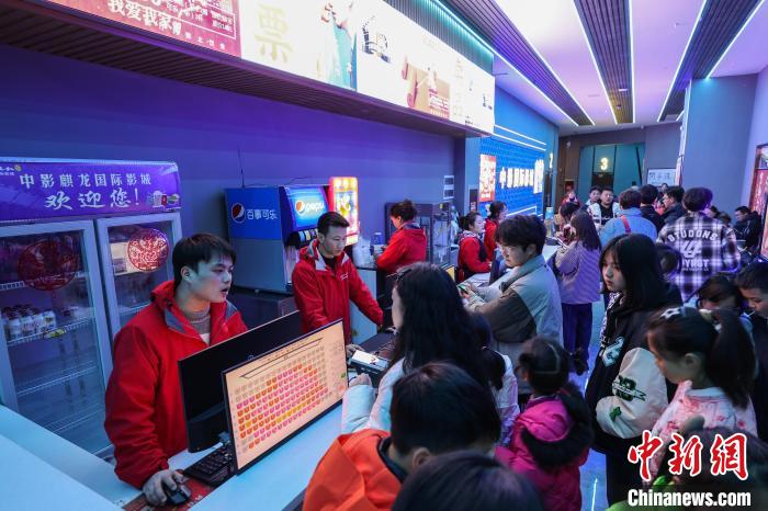 圖為貴州務(wù)川一家電影院,觀影者在購票、購買零食。中新網(wǎng)記者 瞿宏倫 攝