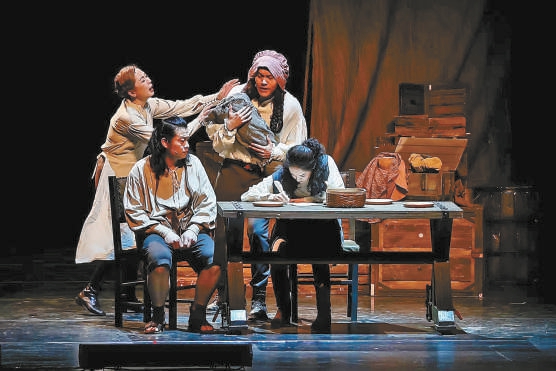 與16世紀(jì)“大航?!睍r(shí)代主題相扣,《威廉與我》的舞臺(tái)散發(fā)著復(fù)古氣息。巧妙多變的裝置設(shè)計(jì),融合了古典與當(dāng)代,既像一座微型劇場(chǎng),又像一艘航行大船,還像一頂恢宏皇冠,也像一處囚籠刑場(chǎng)。劇中四位優(yōu)秀演員,以幽默詼諧、靈氣詩(shī)意、舉重若輕、跳進(jìn)跳出的表演和身份轉(zhuǎn)換,分別扮演莎士比亞的童年、青年、中年、老年和其他30多個(gè)角色,在有限的時(shí)空中,用無(wú)限的想象力和表現(xiàn)力,將這位傳奇劇作家一生中的重要事件及作品創(chuàng)作情況串聯(lián)起來(lái),演繹出他所處時(shí)代的風(fēng)云變幻及其動(dòng)蕩漂泊的復(fù)雜一生。