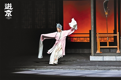 《進京》在表達上既保留了京劇該有的氣質(zhì)和意象感,又融入眾多現(xiàn)代元素,便于年輕觀眾理解。劇中除了西皮、二黃、高撥子、吹腔等傳統(tǒng)京劇板式以外,還在部分唱腔中揉入了揚州小調(diào),讓京劇音樂有了“地方”色彩。