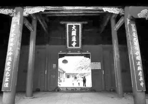 鐘樓上懸吊的大銅鐘叫幽冥鐘,也叫長鳴鐘,鑄造于明天啟年間(1612-1627年),鐘身高八尺,最大外徑五尺,厚三寸,鐘口邊緣成蓮花瓣形狀,外皮刻有楷書佛經(jīng)一部,共有一萬多字。這口銅鐘是五臺山寺廟中最大的鐘,據(jù)說重九千九百九十九斤。穿過鐘樓門洞,沿石鋪道右拐左折,便是顯通寺的山門。山門看上去豪雄而典雅,兩旁豎著石碑,碑身一邊是大草“龍”字,一邊是大草“虎”字,自由揮灑,一筆寫就,字形具有龍虎的形象,為雷雨居士所書。據(jù)說,佛寺選址講求風水,除了靠山之外,總以左青龍、右白虎為佳,顯通寺山門兩側(cè)無此二山,故立此二碑為補。