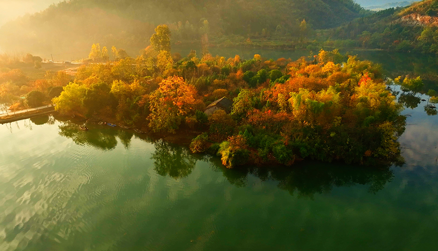 10月29日,在安徽省池州市的秋浦河畔,朝霞與水面相映成趣,泛舟秋浦河仿佛置身仙境。秋浦河是長(zhǎng)江支流,風(fēng)光秀美,因唐代詩(shī)人李白的《秋浦歌十七首》等詩(shī)作而聞名。新華網(wǎng)發(fā)(王帆 攝)