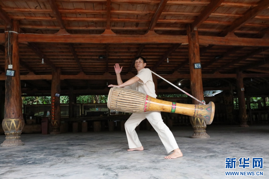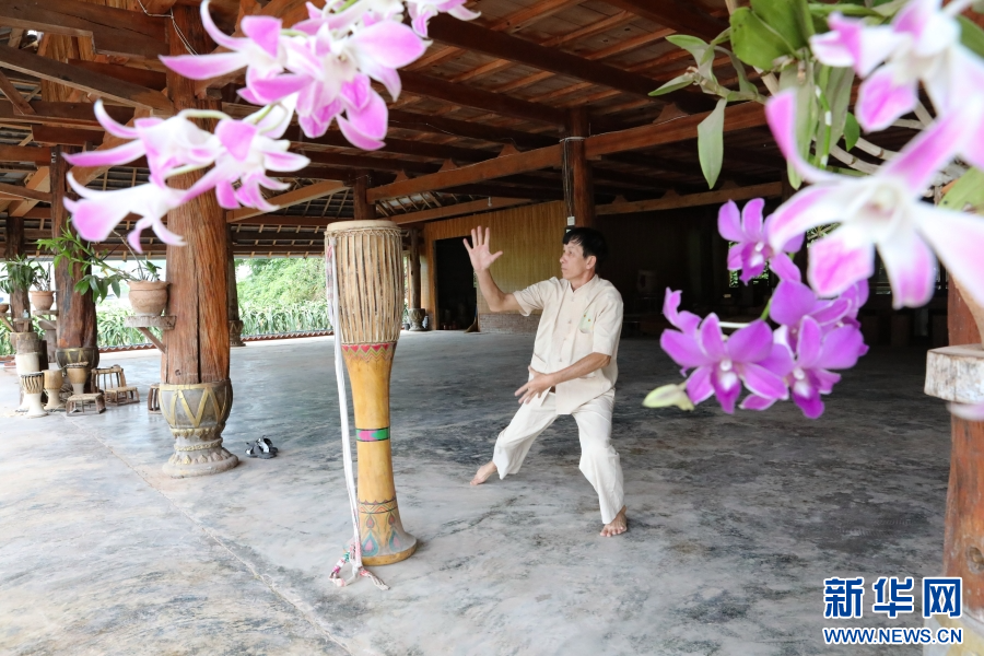 8月16日,波罕丙正在練習(xí)象腳鼓舞。新華網(wǎng)發(fā)(李云生 攝)