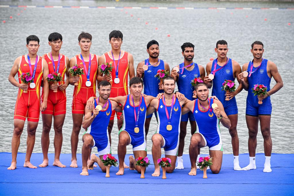 杭州亞運(yùn)會(huì)賽艇項(xiàng)目于25日收官,共決出14枚金牌,中國隊(duì)在參加的13個(gè)單項(xiàng)中收獲11枚金牌和2枚銀牌,烏茲別克斯坦隊(duì)獲得2枚金牌,中國香港隊(duì)獲得1枚金牌。