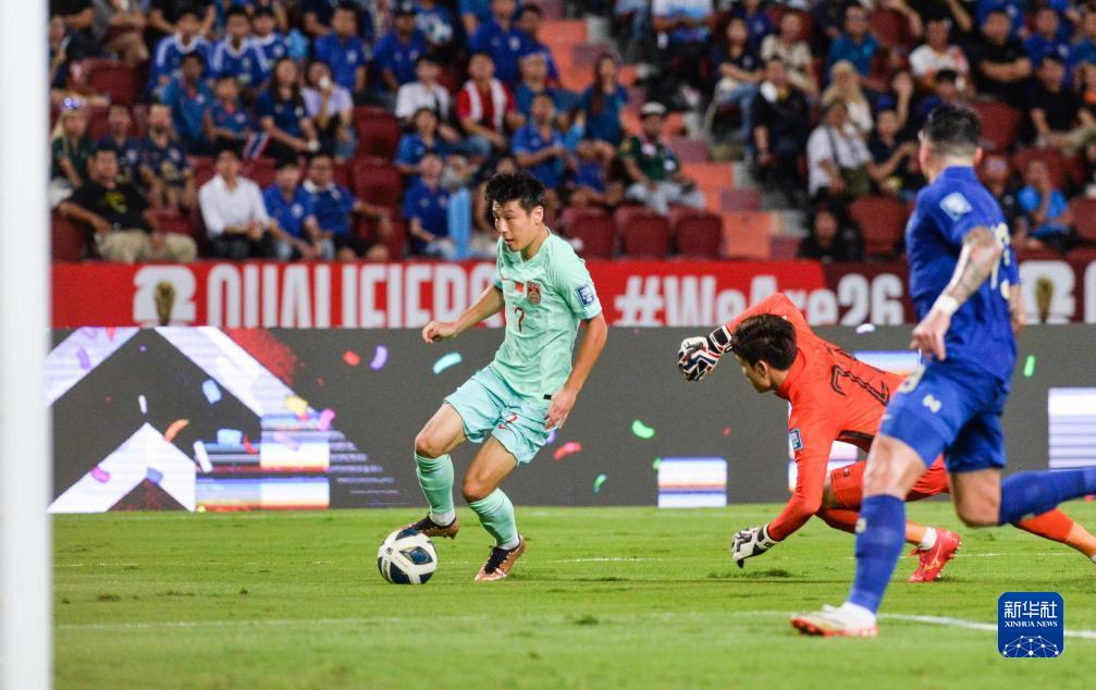 新華社曼谷11月16日電(記者韋驊、林昊、萬后德)2026世界杯預選賽亞洲區(qū)36強賽C組首輪較量16日打響,客場作戰(zhàn)的中國隊在先丟一球的情況下,憑借武磊和王上源的進球,2:1逆轉泰國隊,取得“開門紅”。
