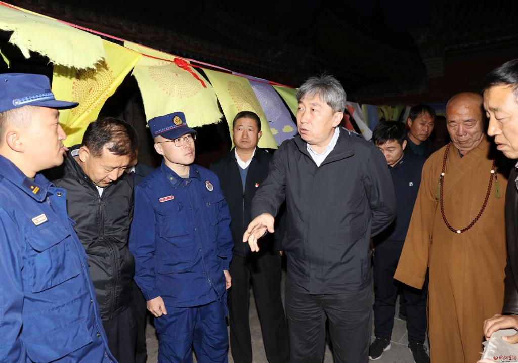 秋冬季節(jié)天干物燥,森林防火消防安全進入關鍵階段。朱曉東沿途察看作物秸稈收儲情況,專門到國保單位佛光寺、尊勝寺檢查消防安全工作,赴五臺縣應急救援訓練基地檢查森林消防應急演練情況。他強調,各級各部門要切實明確消防安全管理人和責任人,各單位特別是防火重點單位不僅要配齊配全各類消防器材,而且要確保管用能用。對巡查發(fā)現(xiàn)的消防隱患要及時消除,切實防患于未然。要加大宣傳力度,讓森林防火期嚴禁野外用火規(guī)定深入人心,切實轉變?yōu)槿罕姷淖杂X意識。要加強應急隊伍實地演練,全面提升發(fā)現(xiàn)、處置和快速反應出動的綜合應急能力。