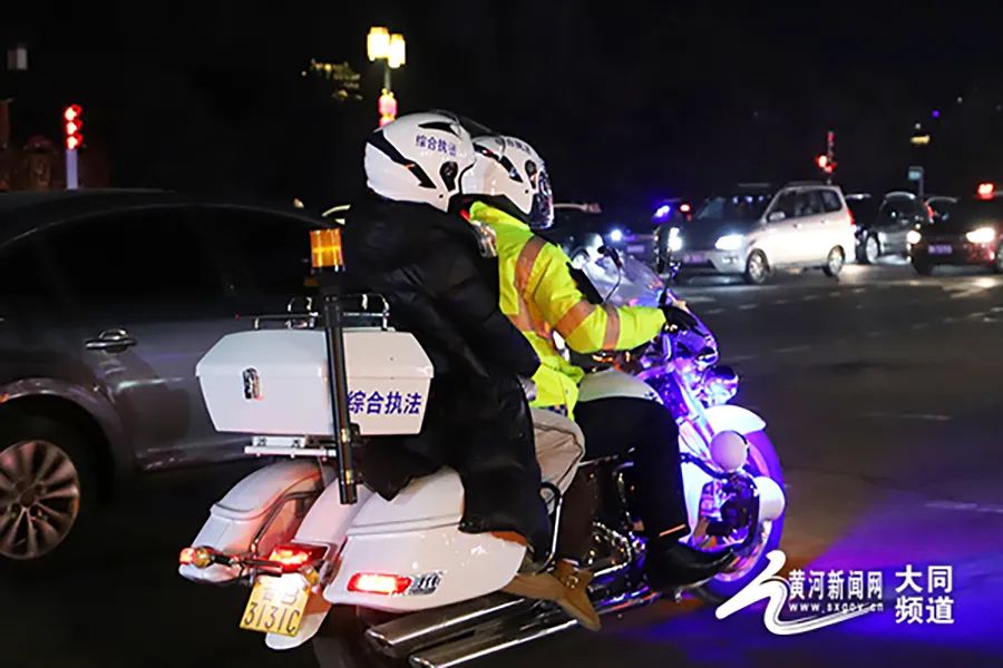 在人流如織的古城街頭,大同平城區(qū)鐵騎隊員們日夜堅守,全時段管理,快速、便捷排查轄區(qū)內各主次干道及重點區(qū)域的死角、盲區(qū),疏導攤點,規(guī)范非機動車停放,幫助前來求助的旅客與市民,做到了城市管理“不打烊”,“城管藍”春節(jié)不斷檔。