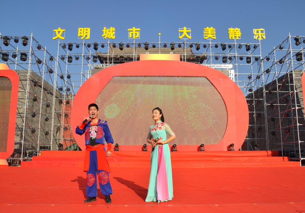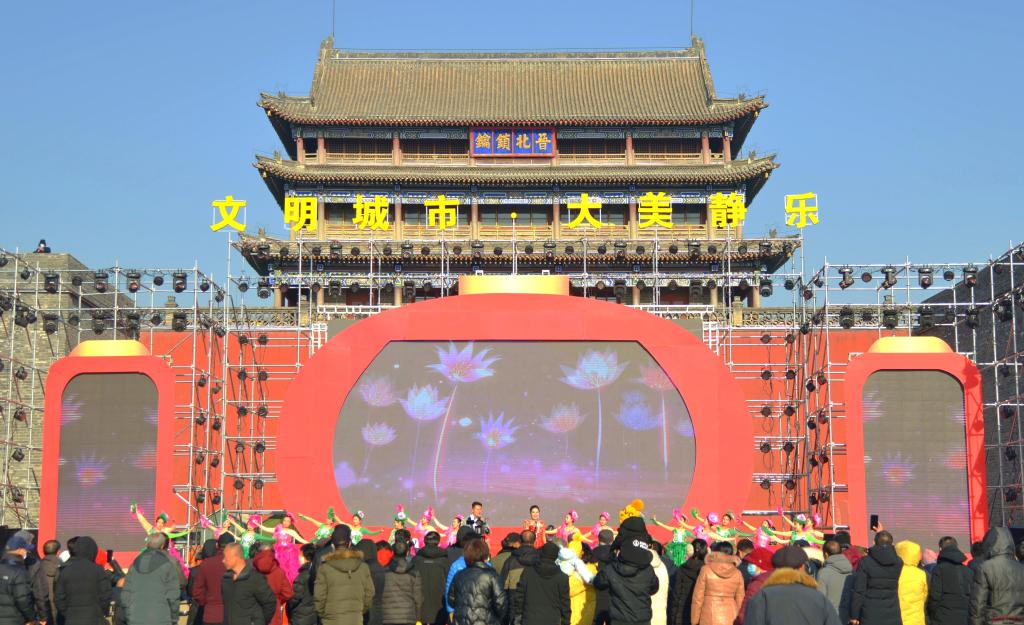 在北城門樓廣場的歌舞現(xiàn)場,二人臺對唱《拜大年》、歌曲《復興的力量》《牽著春風進山村》、舞蹈《幸福中國一起走》、北路梆子《黃河管子聲》選段等精彩的節(jié)目陸續(xù)登臺,贏得廣大市民朋友的陣陣掌聲。