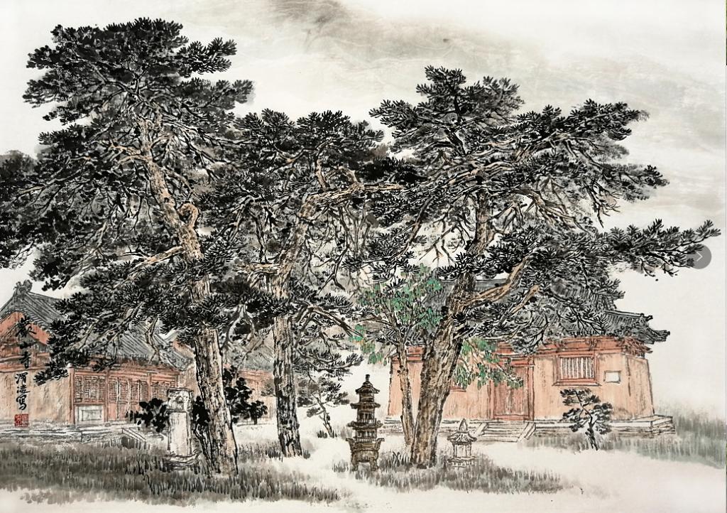 后來因為他繪畫上取得的成績,調(diào)到了忻府區(qū)文聯(lián)工作。條件好了,畫的畫更多了,畫風(fēng)依然樸實親切,給人一種視覺的舒適感。這幾年他是在一路前進的,他筆下的線條清朗有力,墨色變化也更加豐富,畫中有了渾厚華滋的氣象。細(xì)看他的畫,樸實中蘊藏著精巧,拙拙的行筆中偶露鋒厲,給畫面帶來活力生機。我們在一起寫生,他在畫面經(jīng)營上、構(gòu)圖處理上總能給人意想不到的驚喜。畫面虛實處理把握的恰到好處,又能準(zhǔn)確表現(xiàn)自然原貌的神采。于不知不覺中將自己的審美和情感融入了畫中,完成的寫生總比自然景色更加生動、更吸引人的目光,但又讓你看不出他是在哪里做了手腳。