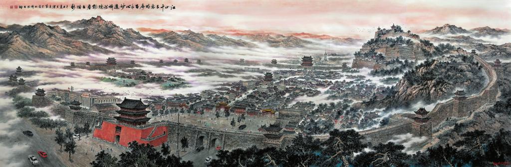 在堅(jiān)持不懈的學(xué)習(xí)和創(chuàng)作過程中,殷渭凌逐漸意識(shí)到,書畫藝術(shù)有其自身規(guī)律,并不存在固定模式,對(duì)于一個(gè)書畫家來說,確定個(gè)人藝術(shù)走向非常重要,想要表現(xiàn)的主題、內(nèi)容、情感最終會(huì)決定創(chuàng)作本身的價(jià)值。也正是清楚了這一點(diǎn),殷渭凌將自己的創(chuàng)作素材鎖定在熟悉和熱愛的故土上。他從家鄉(xiāng)的自然造化中選取創(chuàng)作對(duì)象,提煉感情和思想,然后加以調(diào)整、升華,最終呈現(xiàn)給觀者,讓大家看到了獨(dú)具韻味的黃河、太行、長(zhǎng)城、古鎮(zhèn)、雄關(guān)、窯洞、高原、古剎、佛塔等。